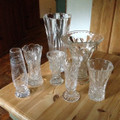 20 clear glass ikea tea light holders 25p each Box of assorted vases £15 vintage jam dishes £10 each 10 shepherd garden hooks £5 each ( bought for £20 each) used for isle and hung with jars filled...