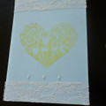 So am half done so far but have pearled and laced the rest! I designed and made the front cover which is a strip of lace top and bottom, 3 pearls studded at the bottom and a noolibird stamp in yellow...